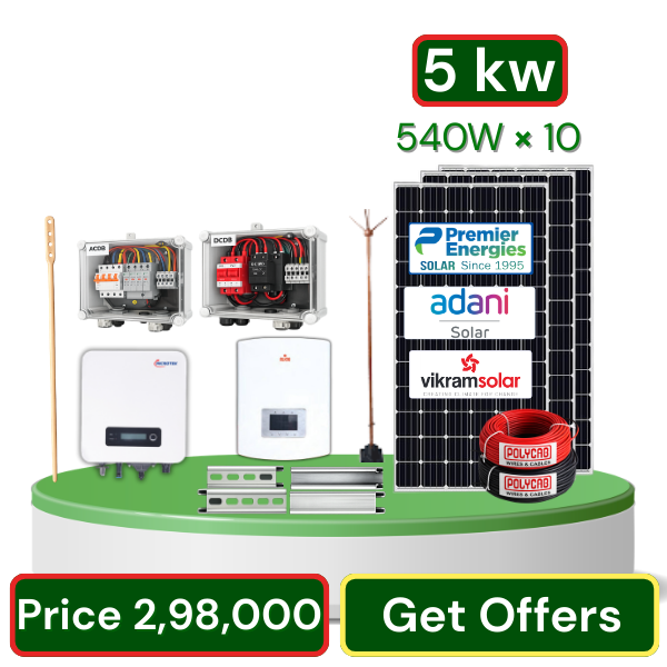 5KW Solar System एक powerful और reliable solar power solution है जो घर, दुकान, ऑफिस या छोटे commercial use के लिए perfect है। इस system में 540 Watt के 10 high efficiency solar panels लगाए जाते हैं जो sunlight को clean electricity में convert करते हैं।